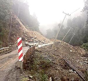 Socavón y derrumbe de tierra interrumpen tránsito de la ruta entre Coñaripe y Liquiñe