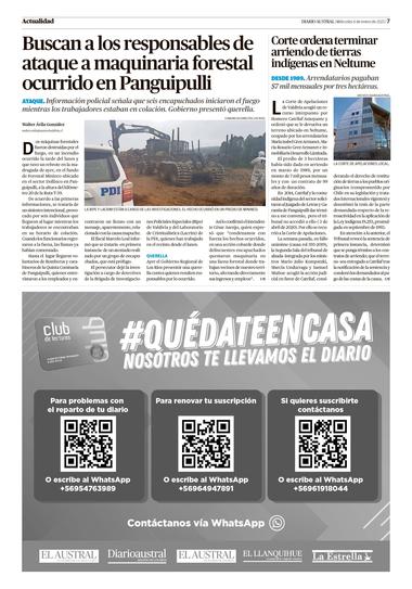 Buscan a los responsables de ataque a maquinaria forestal ocurrido en Panguipulli