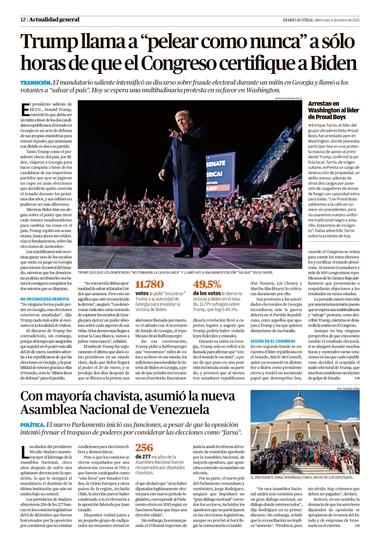 Trump llama a "pelear como nunca" a sólo horas de que el Congreso certifique a Biden