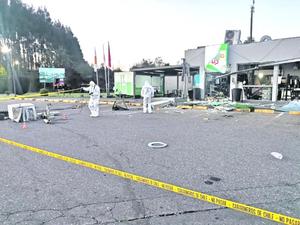 Grupo de 10 delincuentes hizo explotar cajero y quemó cinco automóviles