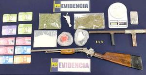 PDI detuvo a 3 personas e incautó drogas, armas y un vehículo clonado