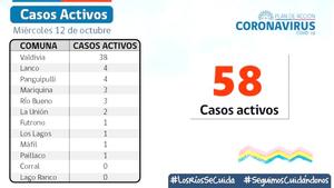 Región registró 54 casos nuevos de covid-19 y los activos continúan en 58