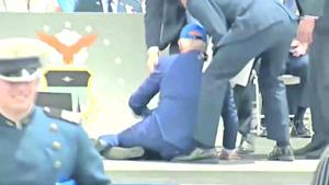 Biden se tropieza y cae al suelo aparatosamente durante una ceremonia en una academia militar