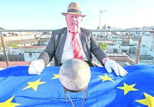 Investigador exhibe el huevo de avestruz en el que Da vinci dibujó un globo terráqueo en 1504